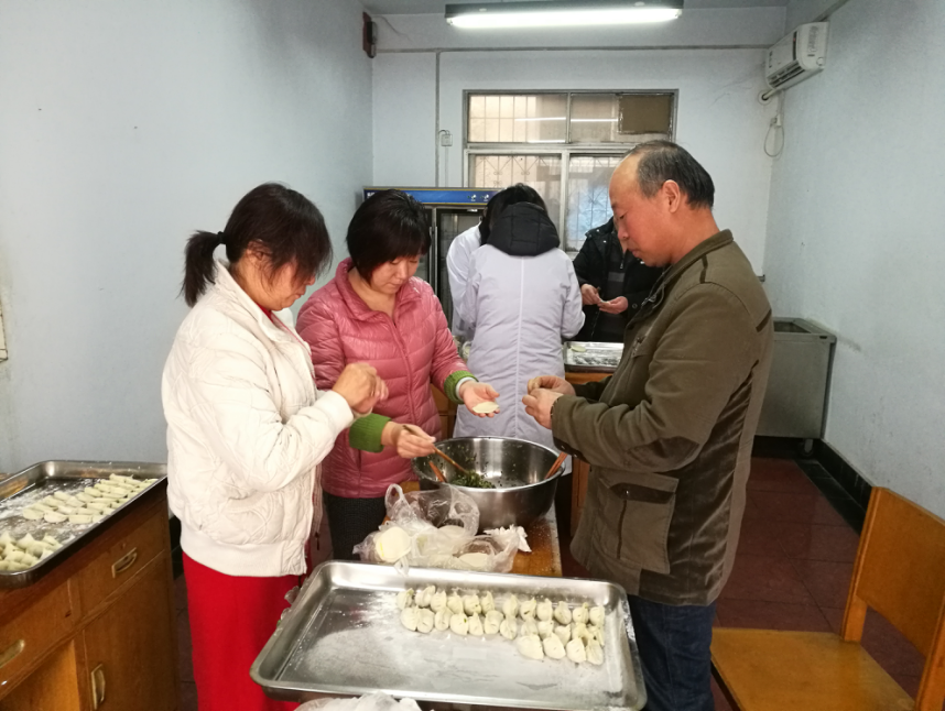 在冬至來臨的前幾天,公司王春敏副總經理特意囑咐食堂,讓公司員工一定吃上冬至水餃。食堂負責人侯景梅為了讓員工們品嘗到美味可口的餃子,提前一天采購了韭菜、大蔥等食料,組織廚師和幫廚把菜仔細摘洗、晾干。12月21日,食堂一早購入豬肉,為了保證餃子的質量及口味,由廚師負責餃子餡的整個調制流程,食堂全體員工也早早地忙開了,切菜、配料、備盤子等,由于食堂工作人員少,為了使員工能在中午按時吃上水餃,王總安排工作不緊張的部門提供支援,環境部、結構部、辦公室對當天工作做了安排和調整,組織胡巧玲、楊巧玲、岳紅、王慶、閆保亮、冉金榮去食堂幫廚,大家分工明確、井然有序、忙而不亂,兩個小時后,約2000個韭菜大肉餡、香噴噴的餃子就包好了。當一碗碗熱騰騰的水餃遞到員工的手里,頓時一種幸福洋溢在每個人的臉龐上。