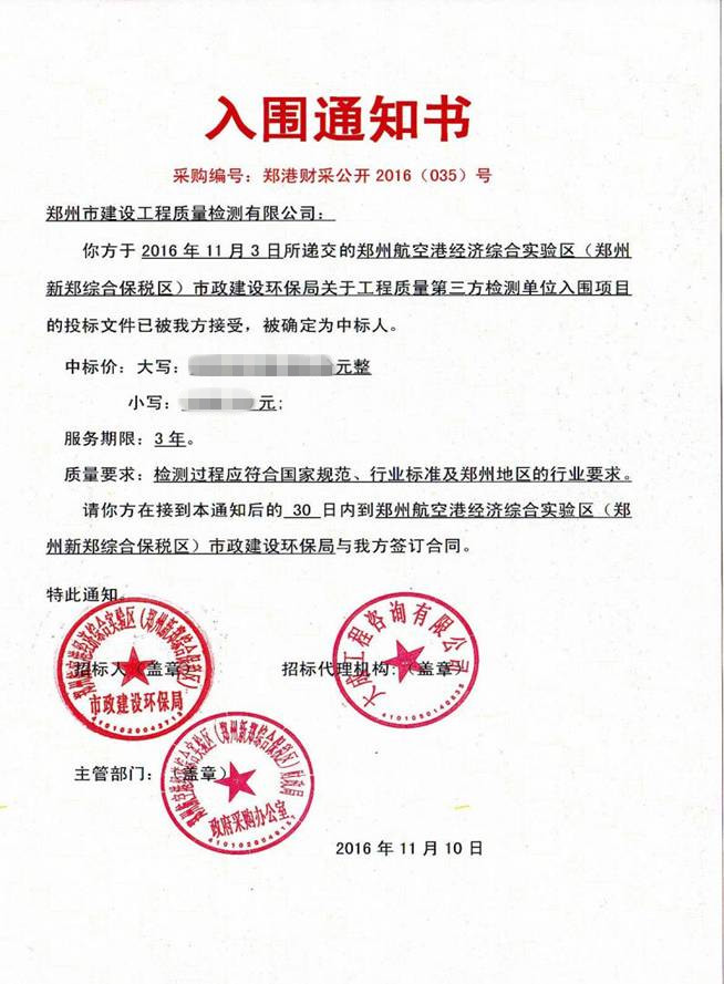 6.中標(biāo)單位信息:鄭州市建設(shè)工程質(zhì)量檢測有限公司