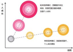 最后,輪崗是一種更為高效的人才培養方式,真正值得培養的人最終會因為輪崗而加速成長。圖3揭示了輪崗培養模式是如何加速被培養對象成長的,圖中圓圈的大小可以理解為能力的大小。由于輪崗能夠使得被培養對象不斷地接受更大的挑戰、解決更復雜的問題,能夠不斷地在深度和廣度拓展其視野,其能力的提升也會更快。
