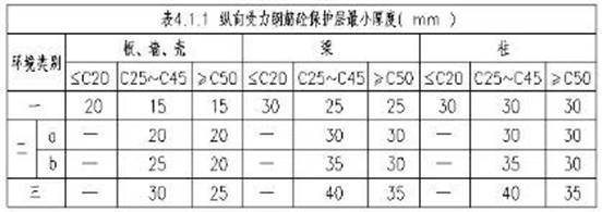 2)板、墻、殼中分布鋼筋的砼保護層厚度不應小于表4.1.1中相應數值減去10mm,且不應小于10mm。