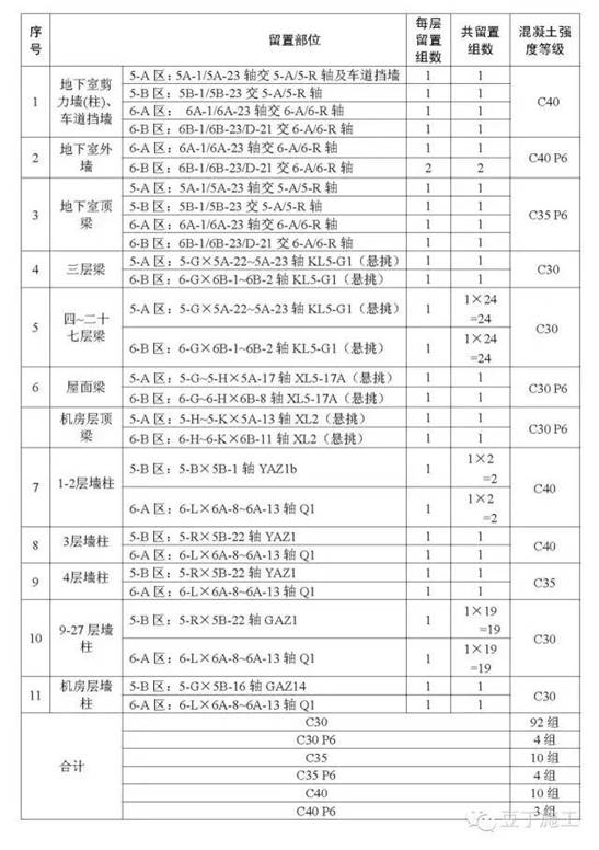 本工程基礎形式分為四種:預應力管樁基礎、人工挖孔灌注樁基礎、天然基礎、筏板基礎。樁基工程由萬科指定的分包單位施工,不在我司施工范圍內,且樁基施工進度不一致。因此承臺、獨立基礎、筏板、基礎梁、地下室底板以下墻柱的試塊留置應遵循如下原則: