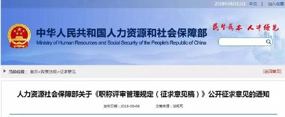 職稱評審管理規定(征求意見稿)全文,大家登錄人力資源社會保障部官網查看,在此不再贅述。