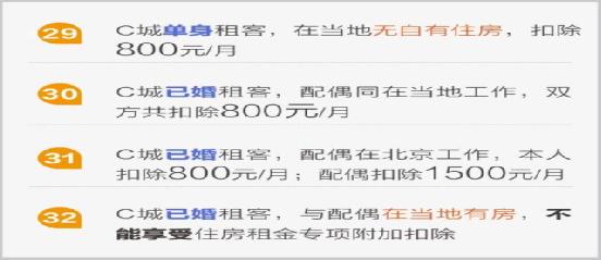 納稅人在主要工作城市沒有自有住房而發(fā)生的租金支出,可以扣除。