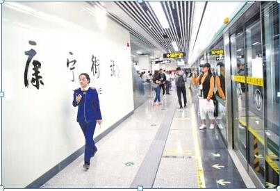 地鐵5號線高峰時段最小行車間隔為5分32秒,平峰時段行車間隔為6分32秒,開通初期的運營時間為早6點至晚上10點。5號線的票價機制與1號線、2號線相同。本版圖片由記者張琮攝影