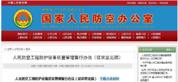 《人民防空工程防護設備質量管理暫行辦法》 (征求意見稿)全文詳見http://ccad.zmfzx.com網站。