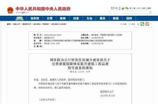 近日,國務院辦公廳轉發了住建部《關于完善質量保障體系提升建筑工程品質的指導意見》的通知,相關要點如下。?xml:namespace>