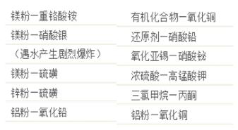 4、易爆藥品及能成為爆炸混合物或引起燃燒的氧化劑:氯酸鉀、氯酸鈉、硝酸、過氧化鈉、硝酸鉀等。