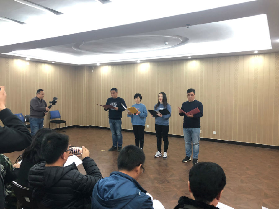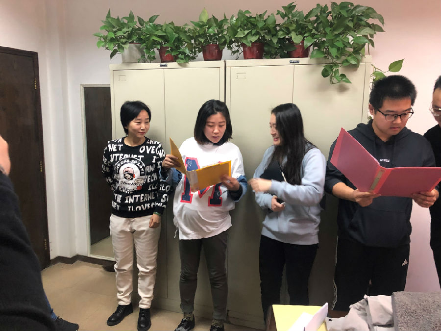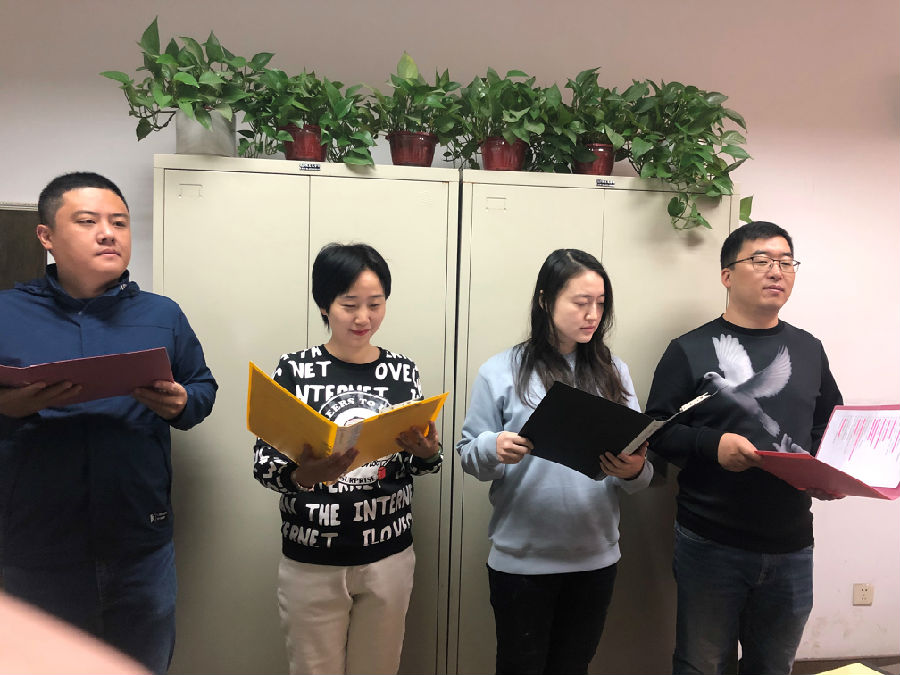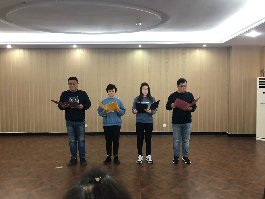 冬日的寒風絲毫不能影響大家對公司年會的期盼和熱情,為了密切相互之間的配合,把更加精彩的節目呈現在公司領導和同事們的面前,工作之余,部門員工們主動放棄休息時間,積極刻苦的對待每次排練,未參與兩個節目表演的同事也并沒有置身事外,積極的為參加表演的同事提出建議,幫助他們熟悉臺詞,調整表演時的肢體動作,尋找合適的朗誦背景音樂。可謂是全員發動齊上陣,凝心聚力創精品!