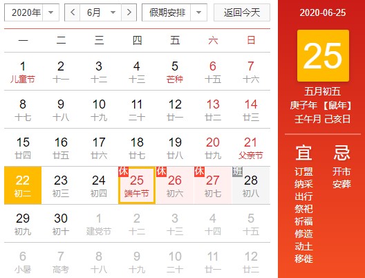 6月25日至27日放假調休,共3天。6月28日(星期日)上班。