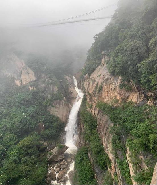 第一站到達的是九龍瀑布。幽靜的河灣、幽深的碧潭、險絕的峽谷、奔瀉的瀑布構成了壯麗的峽谷奇觀。從山上從山上拾級而下,只覺得白云山不是云最多,而是樹,森林覆蓋率達98%,置身山外看不到巖石,只是全部的綠色。尋瀑的過程輕松愉快,不知疲倦,奈何不知美景尚在下游,前半段路程逗留太久,及到中游發現小瀑布開始,便驚喜不斷。到了山底,坐上返山纜車道,再一次俯瞰漫山遍野的綠山。那綿綿青山,青峰千疊,莽莽蒼蒼,像一幅潑墨山水畫!這也使得我們更加體會到最美的風景需要我們不斷地堅持,不斷地攀登。在工作中亦是如此,只有不斷的堅持和探索,才能提高我們的業務能力和專業知識。