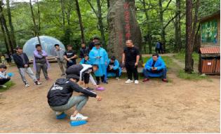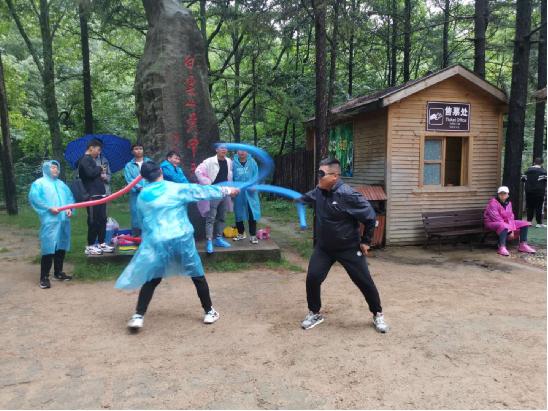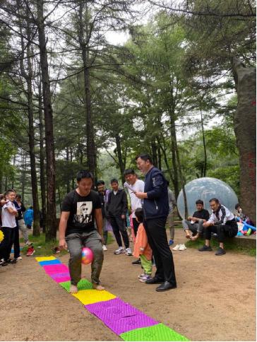 第二站到達的是森林氧吧。這是以森林、清泉、山石、溪澗、瀑布為基點,以高含量的對人體健康極為有益的森林空氣負氧離子和植物精氣等生態因子為特色,輔以各類簡約、樸素且與環境格調相一致的游憩設施。于是就在這里做起了團建活動。本著友誼第一,比賽第二,消除隔閡、提高團隊協作能力提高凝聚力的宗旨,開展了“帶球大沖關”、“摸石頭過河”、“蒙眼互打”三項競技活動。