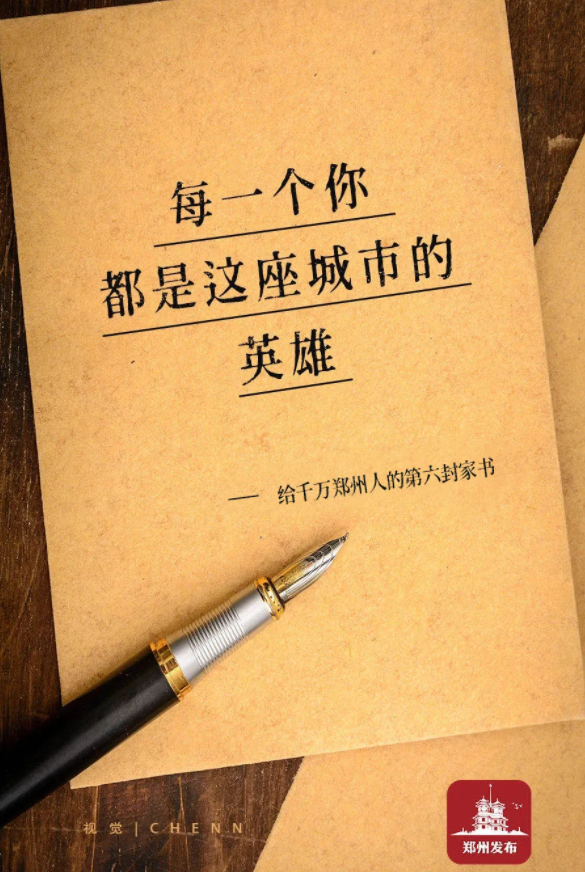 百感交集和千言萬(wàn)語(yǔ),化作筆下這封家書(shū),給每一個(gè)你,給每一個(gè)努力生活、咬牙堅(jiān)持的你,給每一個(gè)堅(jiān)守陣地、不言放棄的你,給每一個(gè)守護(hù)家園、保護(hù)鄭州的你!